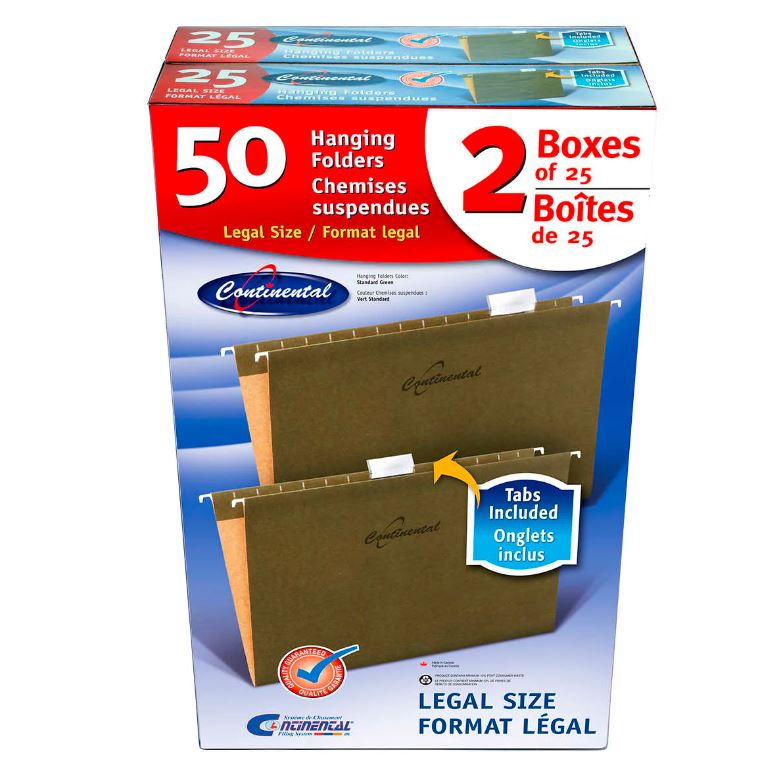 The ideal place to store hard copies next to electronic files or items like brochures, receipts, business cards, and so on is in a durable hanging file folder with an interior pocket. These folders are made entirely of post-consumer materials and 30% recycled content.