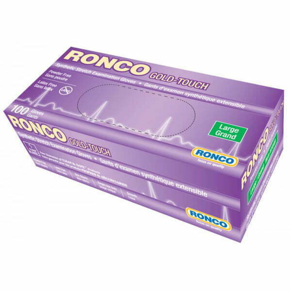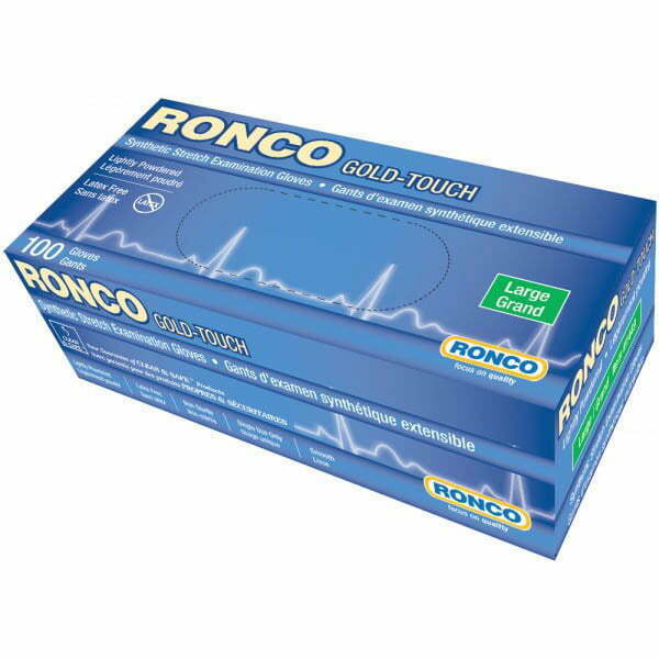 Blended from premium synthetic materials, RONCO Gold-Touch® synthetic stretch gloves are less likely to tear than traditional vinyl gloves.They offer a high level of flexibility for ease of finger movement in jobs that require dexterity. Gold-Touch® is CFIA accepted for use in the food industry and is also licensed for medical use. It comes in lightly powdered (LP) or powder free (PF) options.