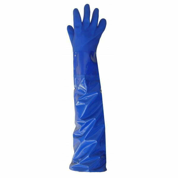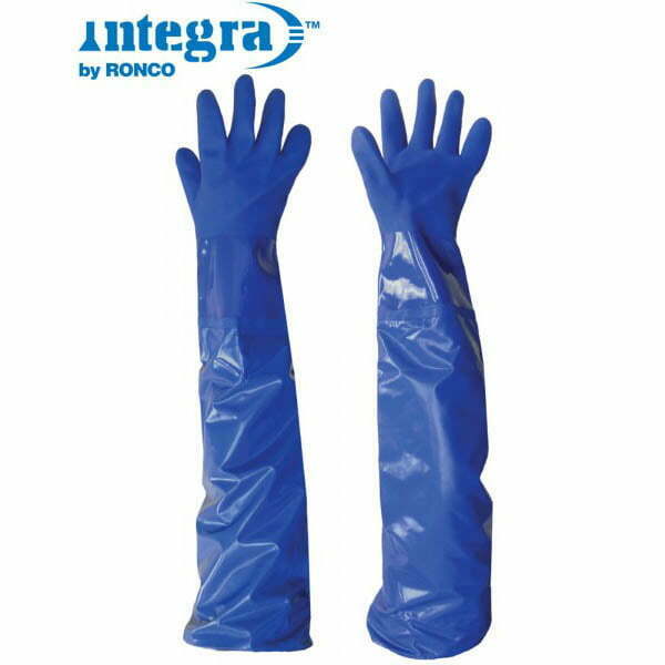 RONCO’s triple-dipped PVC Long gloves have an extended 28″ cuff with elastic at the shoulders for premium protection in a variety of dirty applications such as petrochemical or oil refinery, chemical process, fisheries or plant maintenance.To ensure dexterity, this glove remains soft and flexible under cold temperature use. A sandy finish on the palm and fingers ensures maximum grip in wet, oil or solvent handling. A key feature of the glove is its treated cotton interlock liner that absorbs sweat and eliminates bacteria and odour, even after prolonged use. Unlike competitive gloves on the market, the Integra™ PVC Long glove comes in a variety of sizes for a comfortable fit.