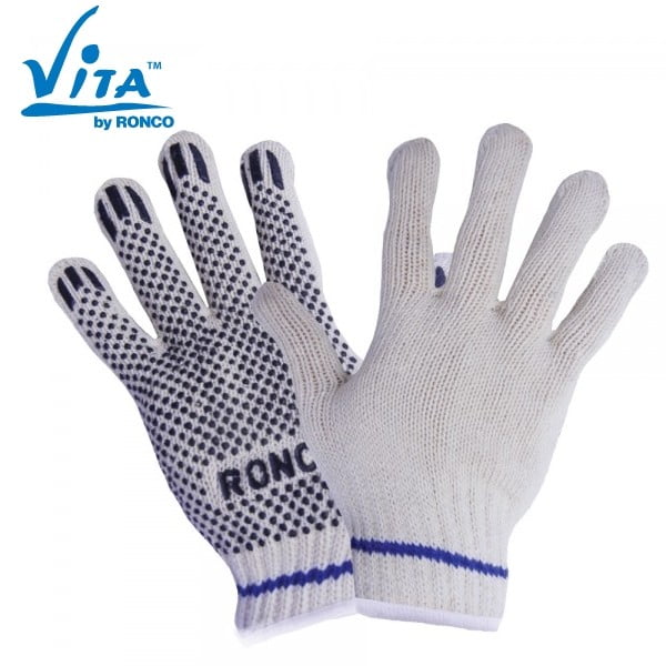 This glove offers economical hand protection with a strong grip. VITA™ string knit gloves are a comfortable fit, are washable for reuse and are preferred by workers in automotive, food processing, warehousing and general maintenance applications. If you want quality, make sure you’re using RONCO’s Glove With the Blue Line!