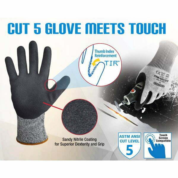 PrimaCut™ 69-572T Sandy Nitrile Palm Coated Touch Compatible Glove ANSI 5