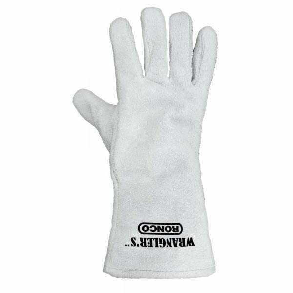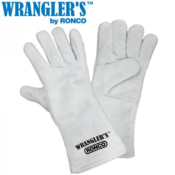 Made from premium quality split leather, this glove is used by workers for welding and general meterial handling. The WRANGLER’S™ gloves offer the ultimate in safety and comfort. Featuring gauntlet cuffs & twaron stitching and jersey lining with cotton canvas cuff lining.