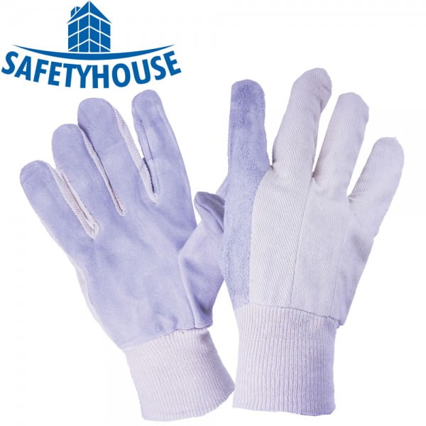An economical favourite of workers for general labour, assembly or warehouse applications, the SafetyHouse split leather palm glove is available in a clute pattern with knitwrist cuff and reinforced leather index finger. Manufactured with a 100% cotton back, this glove is breathable and comfortable for all-day wear. It effectively repels grease and liquids and is washable for repeated use.